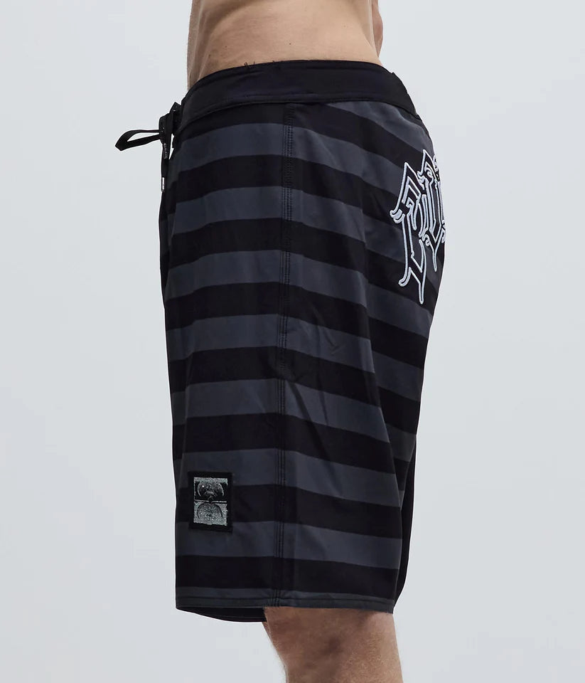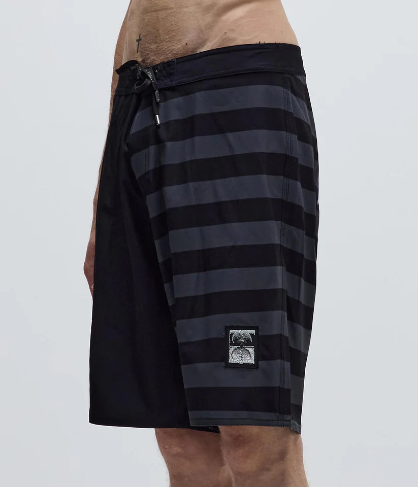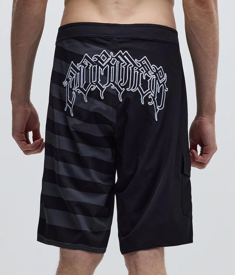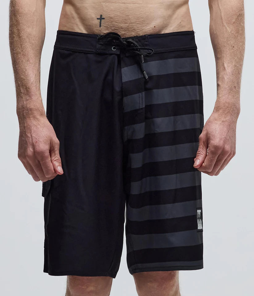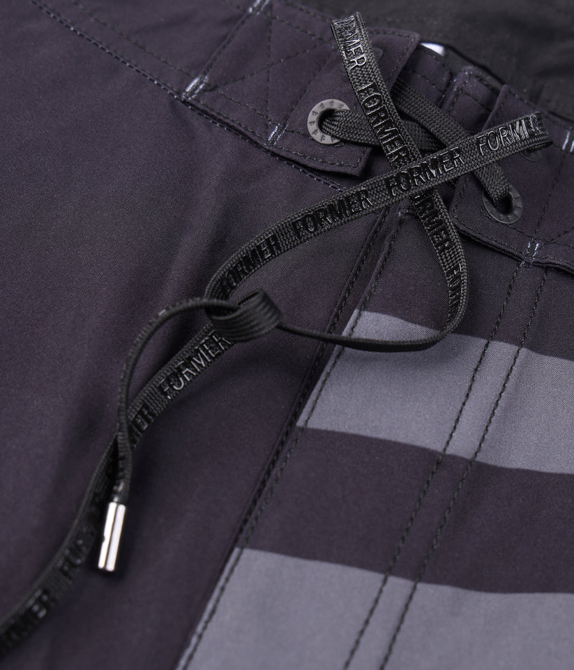 Designed by FORMER team rider Dion Agius and constructed from a premium 4-way stretch fabric. Delivered in our Standard 20" trunk fit featuring sublimated stripe prints, back applique artwork, silver Lurex Crux and Legacy woven labels, and a side cargo pocket.
