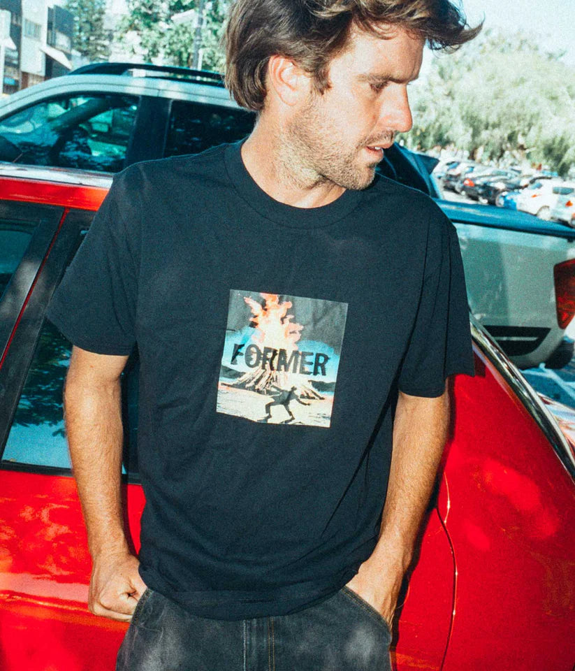 Crafted in a premium 200GSM jersey cotton and delivered in our standard FORMER T-shirt block for a relaxed and comfortable fit. Featuring a front graphic in a soft hand plastisol screen print.