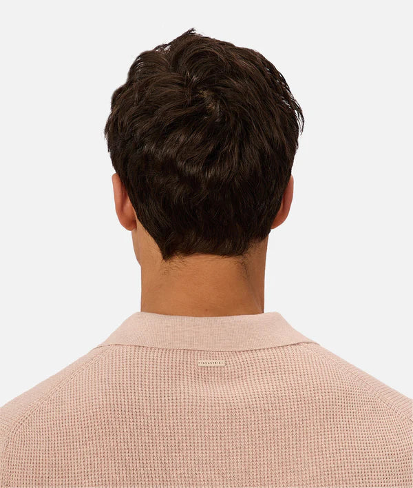 Crafted from 100% breathable cotton, The Ravenna Polo combines lightweight comfort with a polished finish. The textured waffle knit design and spread collar with a three-button placket bring a touch of sophistication, while ribbed trims keep the look sharp. Equally at home at a summer event or a poolside gathering, it’s a true warm-weather essential.