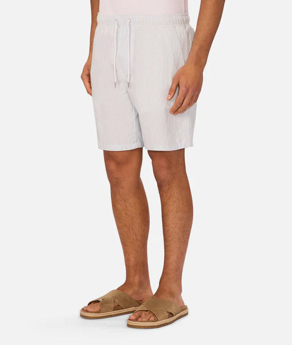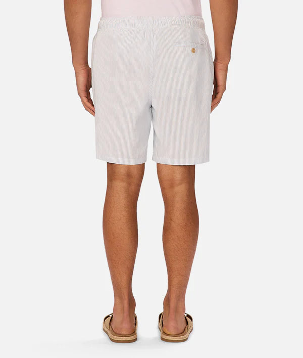 Designed for everyday ease, The Sorrento Short feature a classic pinstripe pattern for a refined touch. The elastic waist with drawcord fastening ensures a comfortable fit, while side pockets and a back button-closure pocket add practical functionality. A perfect balance of casual comfort and smart style.