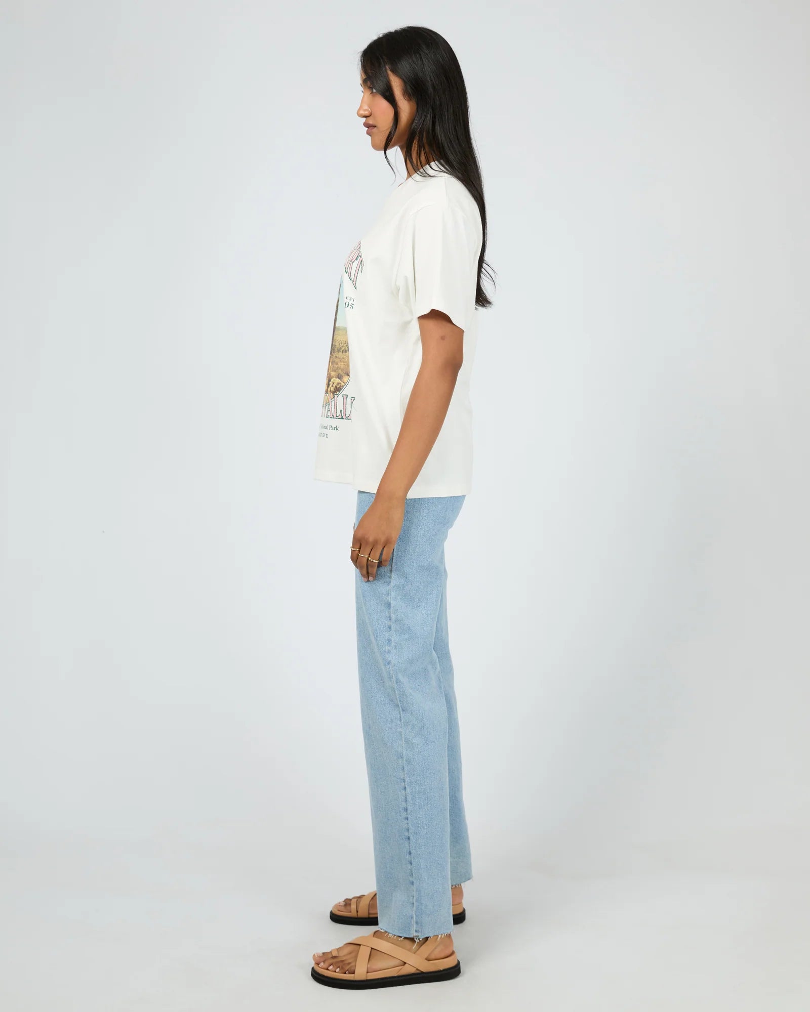 Get a sneak peek into the Joshua Tree National Park with the Palm Desert Box Tee in vintage white. This boxy fit tee will be your go-to for everyday errands and the days you want your outfit to say something extra. Featuring an All About Eve exclusive graphic, you will be the envy of those around you when wearing this effortlessly cool piece.
