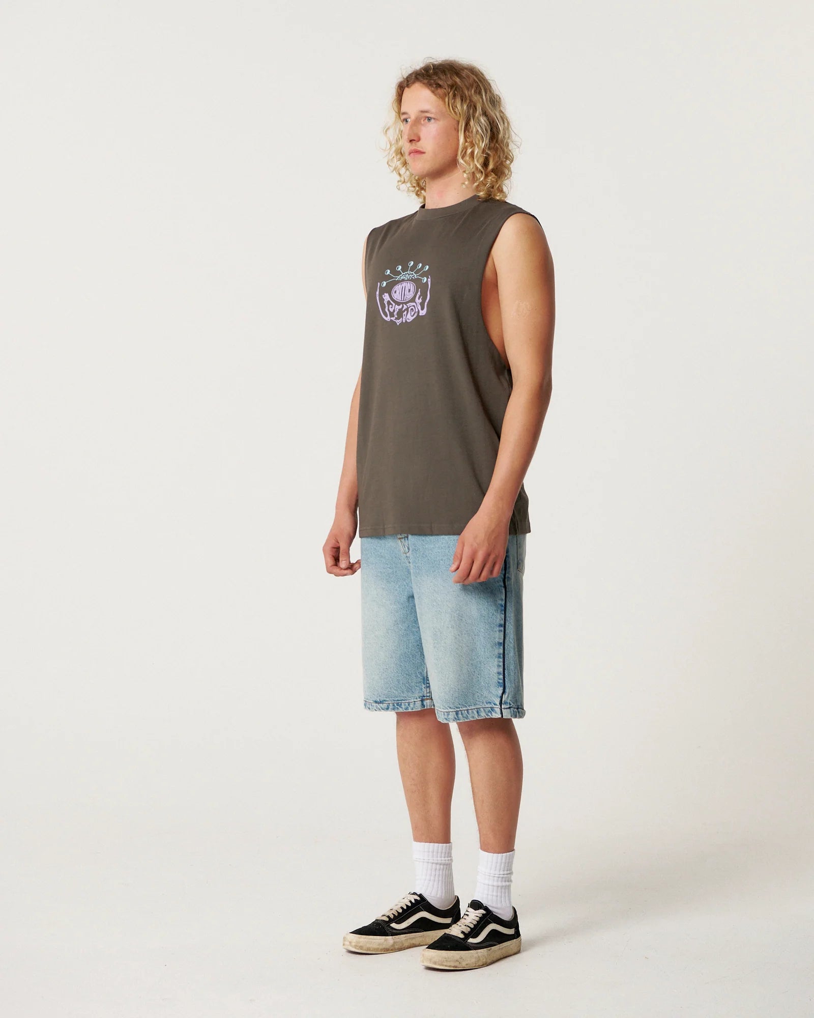 The Madness Muscle Tee is a regular fit muscle tee made from 230gsm cotton singles, washed before and after make to keep shrinkage at an all-time low. Fit is slightly opversize. Our guy is 6'1" and is wearing a size Large.